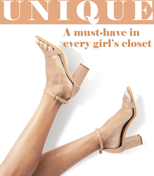Ankis Nude Silver Black Heels Women's Open Toe Ankle Strap Block Chunky Low Heeled Sandal Comfortable Office Wedding Dress Pump Shoes Standard Size 2.25 Inches Heel Design 6.5 Nude Pu