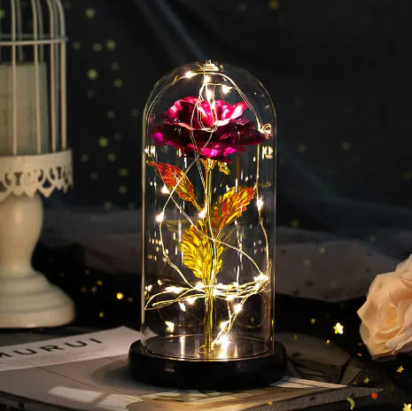 Enchanted Forever Rose Flower in Glass LED Light Christmas Decoration