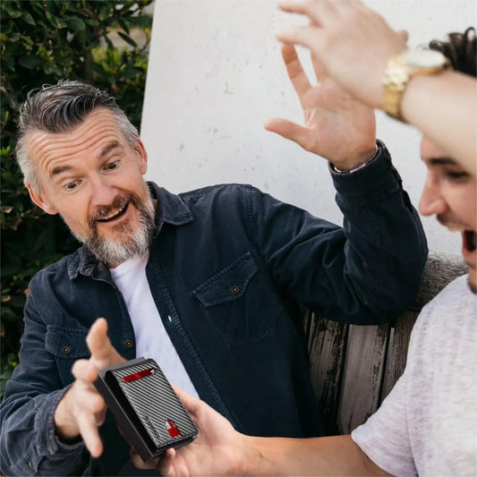 RUNBOX Wallet for Men Slim Rfid Leather 2 ID Window With Gift Box Carbon Black-15 slots