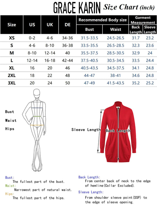 GRACE KARIN Women Lightweight Cardigan Sweaters with Pocket Long Sleeve Shrugs Dark Blue Green XX-Large