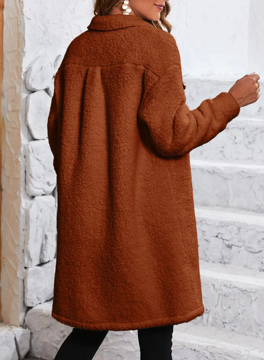EVALESS Fuzzy Fleece Jackets for Women Fashion Long Sleeve Lapel Button Down Long Teddy Coat Faux Fur Warm Winter Outwear X-Large D Orange