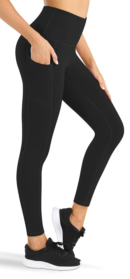 Fengbay 2 Pack High Waist Yoga Pants, Pocket Yoga Pants Tummy Control Workout Running 4 Way Stretch Yoga Leggings Large Black & 9622 Dr Black